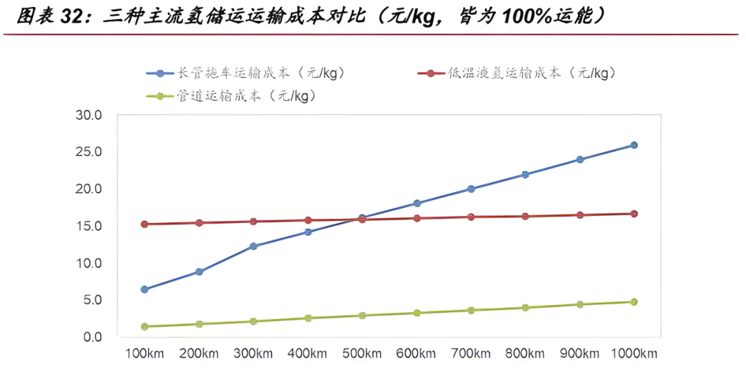不同輸氫方式,對應的成本也存在很大的差異。其中距離遠近是很重要的因素。