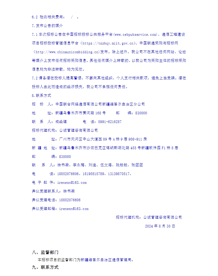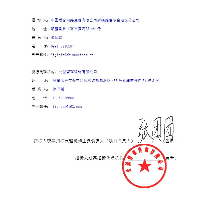 招標人:中國聯合網絡通信有限公司新疆維吾爾自治區分公司