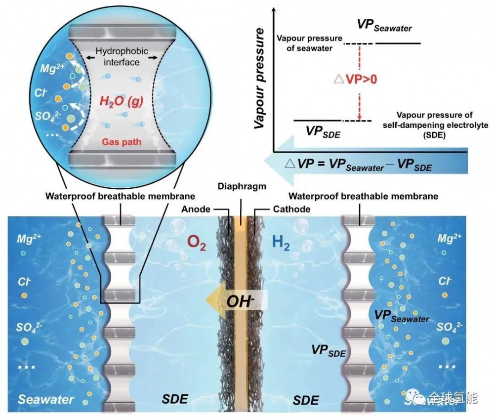 相變遷移驅(qū)動(dòng)的海水無(wú)淡化原位直接電解制氫原理