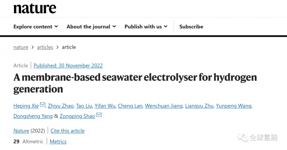 11月30日,謝和平院士與他指導(dǎo)的深圳大學(xué)/四川大學(xué)博士生團(tuán)隊(duì)在《Nature》上發(fā)表了題為“A membrane-based seawater electrolyser for hydrogen generation”的研究成果。