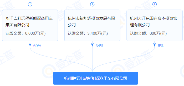 根據股權穿透圖顯示,該公司由浙江吉利遠程新能源商用車集團有限公司、杭州大江東國有資本投資管理有限公司、杭州市新能源投資發展有限公司共同持股。