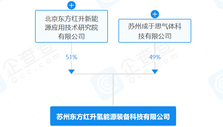 根據股權穿透圖,該公司由北京東方紅升新能源應用技術研究院有限公司、蘇州成于思氣體科技有限公司共同持股。