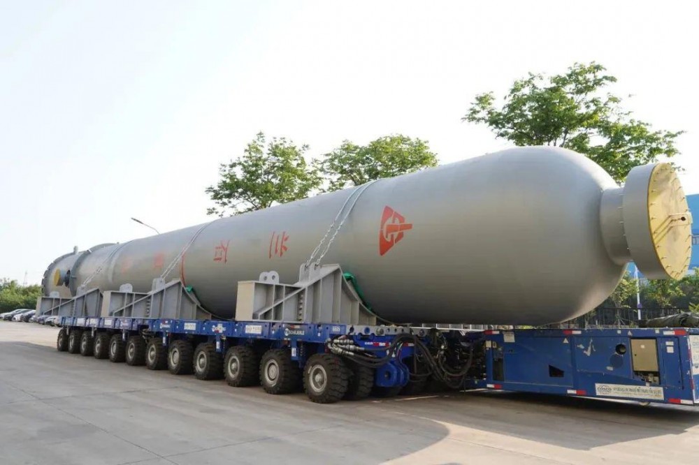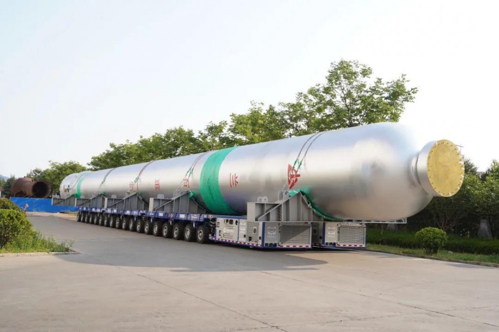 該項目采用第三代環烷基油加氫技術,涵蓋一系列新技術新工藝,提升高端特種油品加工能力,以適應市場對高端、差異化石化產品的需求。青島公司承制項目加氫處理反應器、加氫精制反應器,最大直徑3m、最大壁厚194mm、最大重量770t。