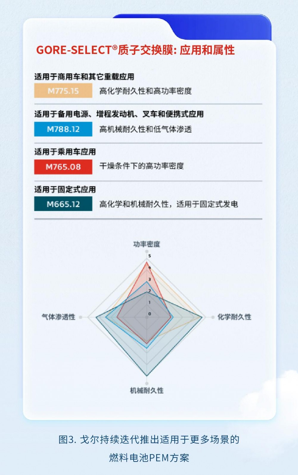 技術的突破往往源自核心材料的創新迭代。1969年,Bob Gore博士發現膨體聚四氟乙烯(ePTFE)這一革命性材料,基于其獨特的微孔結構,戈爾在1994年催生出里程碑產品——增強型GORE-SELECT?質子交換膜,為燃料電池技術開辟了新紀元。這項創新不僅賦予燃料電池卓越性能,更以優異的產品一致性、高功率密度及卓越的化學機械耐久性,幫助制造商降低總擁有成本并提升系統性能。