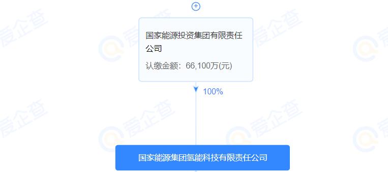 根據(jù)股權(quán)穿透圖顯示,國家能源集團(tuán)氫能科技有限責(zé)任公司由國家能源投資集團(tuán)有限責(zé)任公司全資持股。