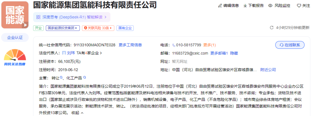 6月6日,國家能源集團(tuán)氫能科技有限責(zé)任公司工商信息變更。