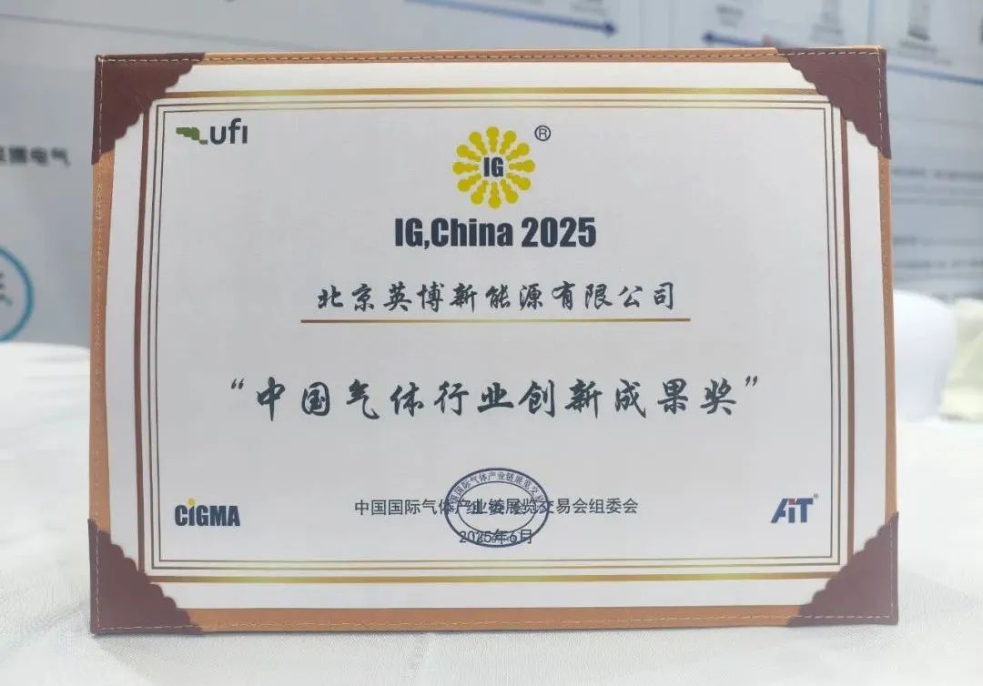 同期,英博新能源所展出的以上產品和方案也受到了中國國際氣體產業鏈展覽交易會組委會的高度認可,被授予了“中國氣體行業創新成果獎”,該獎項是對英博新能源技術實力與創新理念的權威認可,鞭策著我們繼續深耕氫能領域,為客戶提供更優質的產品、方案和服務。
