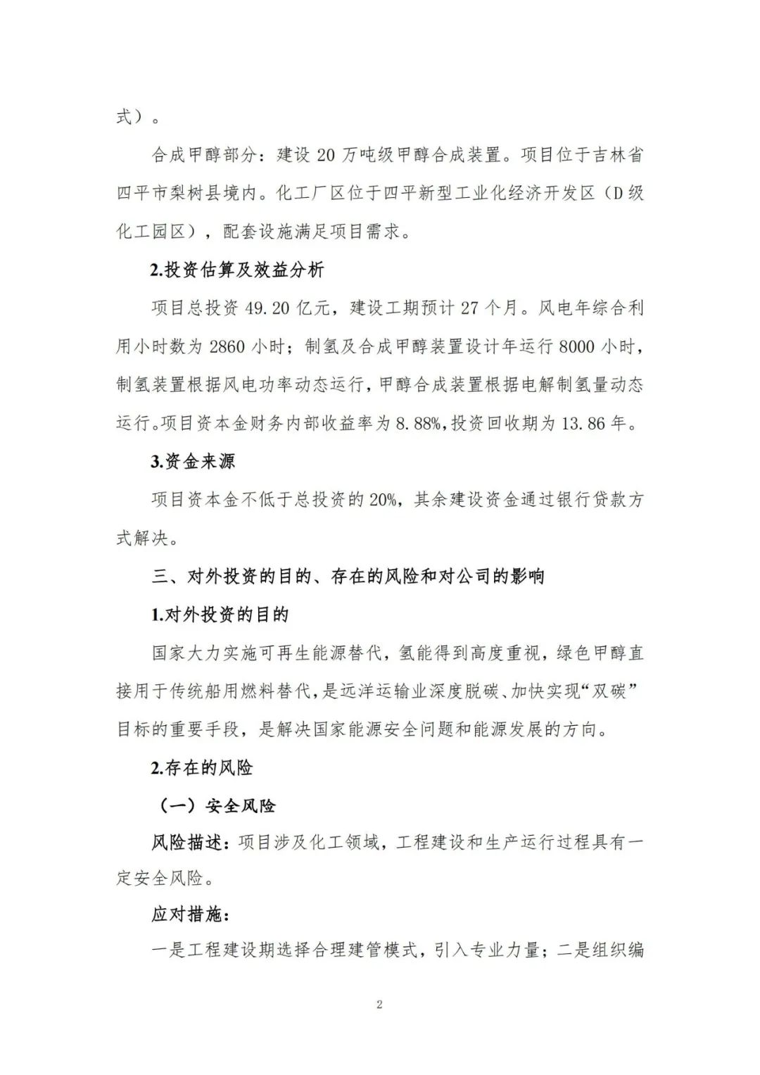 吉電股份表示,國(guó)家大力實(shí)施可再生能源替代,氫能得到高度重視,綠色甲醇直接用于傳統(tǒng)船用燃料替代,是遠(yuǎn)洋運(yùn)輸業(yè)深度脫碳、加快實(shí)現(xiàn)“雙碳”目標(biāo)的重要手段,是解決國(guó)家能源安全問(wèn)題和能源發(fā)展的方向。