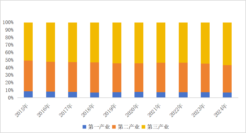 圖 3 2015-2024年三次產(chǎn)業(yè)增加值占國內(nèi)生產(chǎn)總值的比重