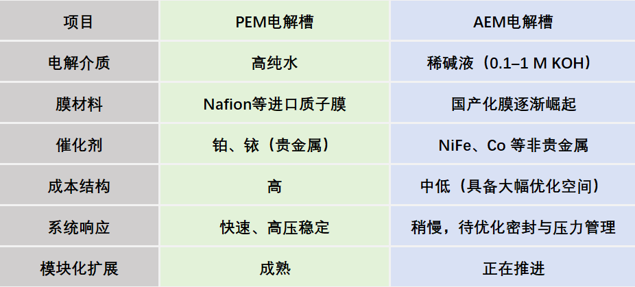 因此,PEM適合對(duì)性能要求極高的核心場(chǎng)景,而AEM則更具成本效益優(yōu)勢(shì),更適合規(guī)模化推廣、綠色能源配套、分布式制氫等新興市場(chǎng)。