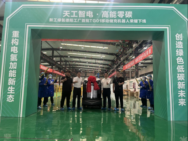 當日,新工綠氫德陽工廠首批TG01移動儲充機器人正式下線。