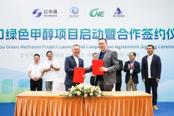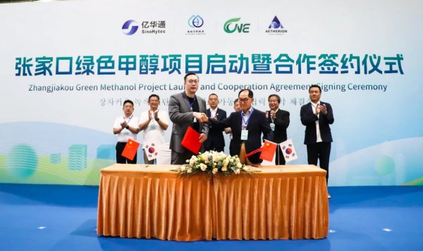 隨后在綠醇產業合作啟動儀式上,海珀爾新能源與中基新能、中基新能與韓國綠色能源聯盟分別簽署合作協議,共同推進綠醇、綠色產業聯合技術研發、項目開發、產業鏈整合及亞太市場協同拓展。