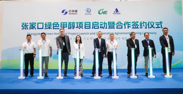 近日,河北張家口綠醇項目啟動儀式在張家口隆重舉行。海珀爾與中基新能、中基新能與韓國綠色能源聯盟分別簽署合作協議。海珀爾新能源、億華通、中基新能、韓國綠色能源聯盟、意大利船級社RINA、中遠海運物流供應鏈有限公司等國內外行業領軍機構代表及行業專家出席活動。