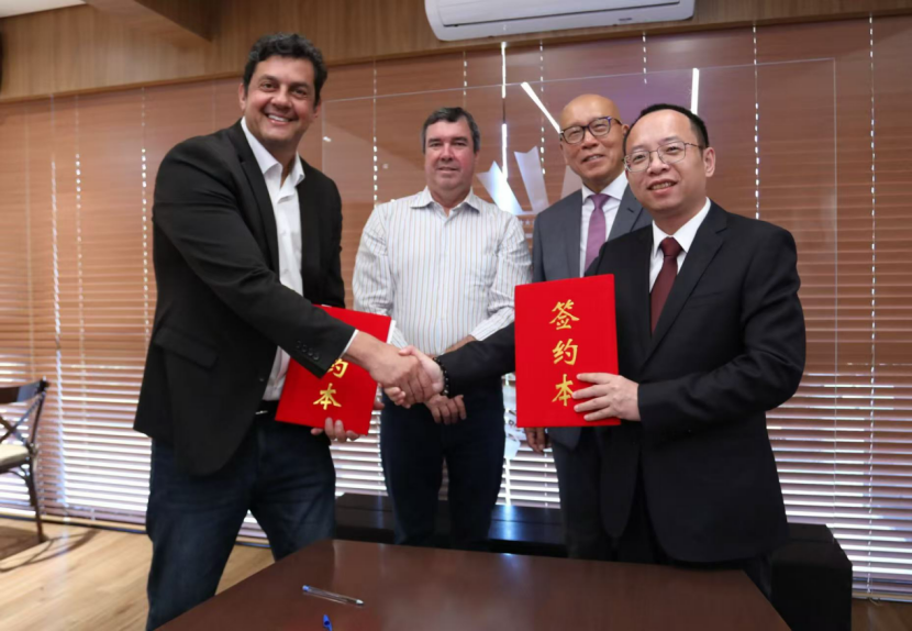 明陽集團、明陽氫能聯席董事長沈忠民先生、明陽氫能CEO潘永樂先生與Mato Grosso Do Sul州長Eduardo Correa Riedel先生、GWE公司CEO Aline Mirelle Marcon 先生等一行共同出席。