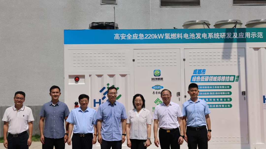 該項目由厚普清潔能源 (集團) 股份有限公司、四川榮創新能動力系統有限公司、成都集氫科技有限公司共同承擔,是成都市科技局 “2024 年綠色低碳領域揭榜掛帥項目 — 高安全 220kW 氫燃料電池應急發電系統” 的重要成果。項目團隊提前 8 個月完成了產品研制,并在微網優聯科技(成都)有限公司舉行了隆重的產品發布儀式。成都市新都區副區長賀凱豐以及成都市科技局,成都市經信局,新都現代交通產業園區管委會等相關部門領導,與氫能產業相關企業、院校及媒體代表共同見證了這一重要時刻。