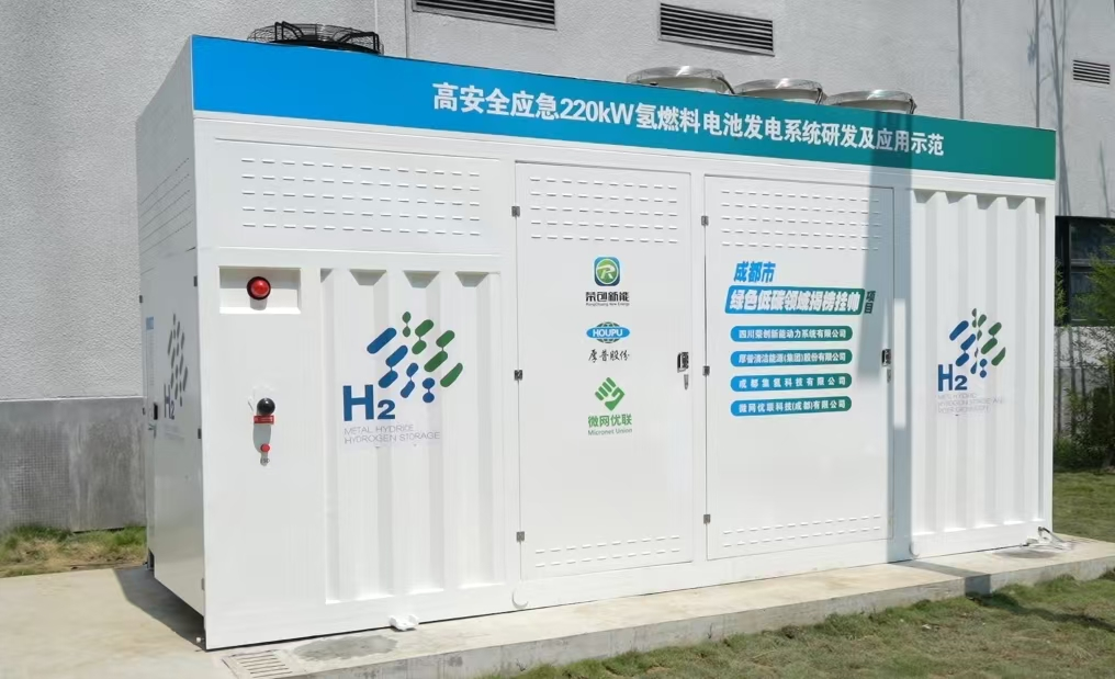 厚普股份作為四川本土企業,已深耕氫能裝備領域十余年,參與了國內外百余個加氫站建設,并已成為氫能“制儲運加用”全產業鏈鏈主企業。此次與榮創新能攜手,正是發揮了厚普在固態儲氫發電領域的積累——早在2022年,厚普股份已落地國內首個200kW移動式固態氫能發電并網項目,將光伏發電耦合固態儲氫應用于電力系統變為現實。此次220kW固態儲氫燃料電池應急發電系統示范應用,則完成了燃料電池與電力變換系統的高效耦合,與無縫切換的工程驗證。