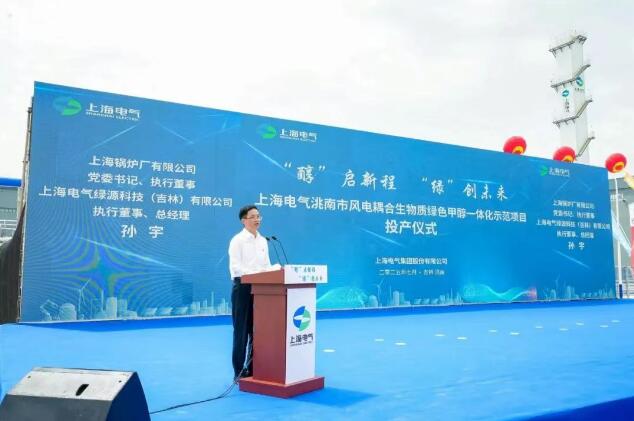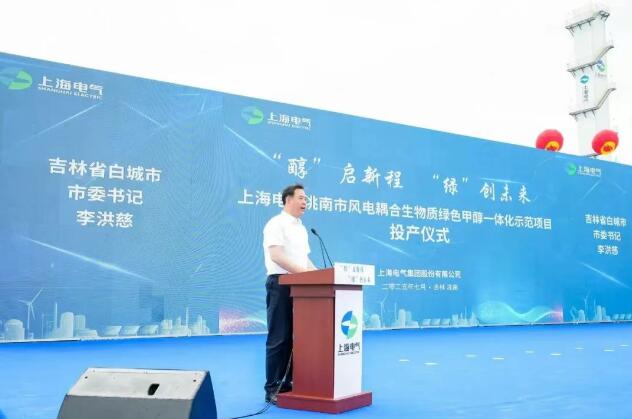 7月15日上午,上海電氣洮南市風電耦合生物質綠色甲醇一體化示范項目投產儀式在吉林省洮南市舉行,在吉林省委常委、常務副省長蔡東,省政協黨組副書記、副主席吳靖平,白城市委書記李洪慈,市委副書記、市長楊大勇,上海電氣集團黨委書記、董事長吳磊等領導的共同見證下,首批綠色甲醇產品順利產出。這一里程碑事件,標志著我國在綠色氫基燃料領域取得重大突破,上海電氣為能源結構轉型升級和“雙碳”目標實現提供了又一可復制、可推廣的“中國方案”。