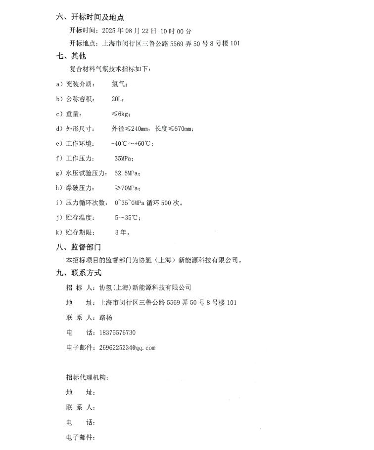7月22日,協(xié)氫300只氫能無(wú)人機(jī)氣瓶招標(biāo)公告。