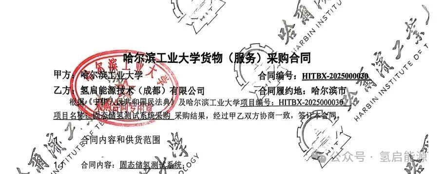 2025年7月,氫啟能源成功中標(biāo)并簽署哈爾濱工業(yè)大學(xué)固態(tài)儲氫系統(tǒng)項目合同。