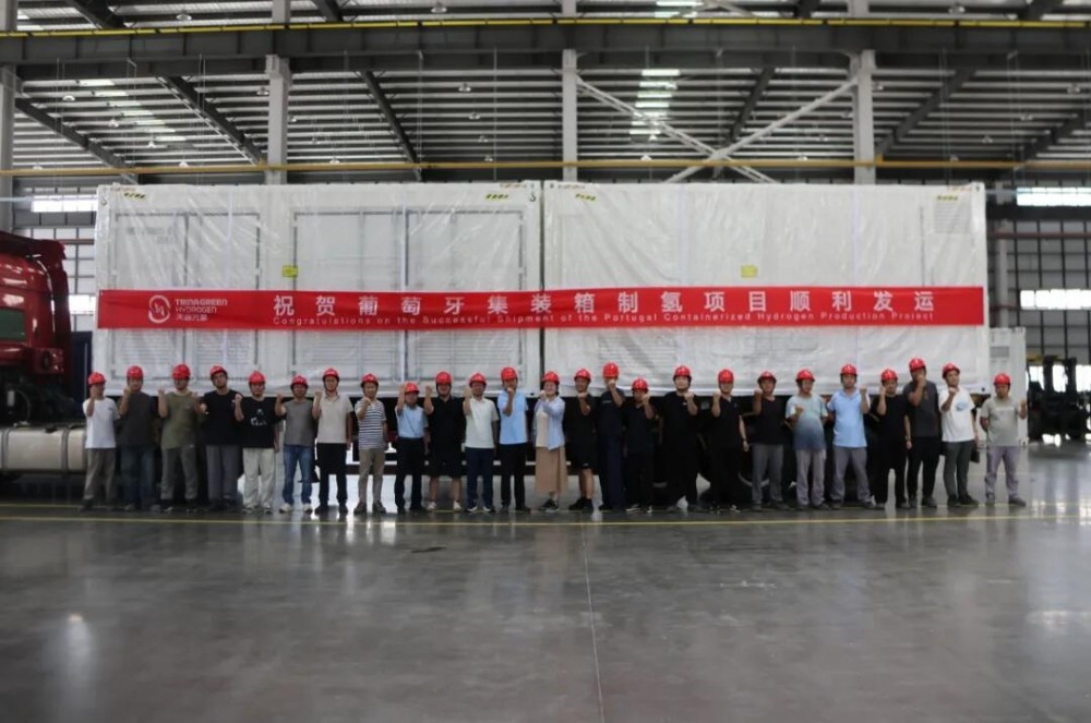 本次發(fā)運(yùn)的MW級集裝箱式電解水制氫系統(tǒng),采用4個標(biāo)準(zhǔn)集裝箱,集成了電解槽、氣液分離裝置、純化系統(tǒng)、電源、水處理、壓縮機(jī)等十余項設(shè)備,將應(yīng)用于葡萄牙政府加氫站示范項目。該項目是葡萄牙政府能源轉(zhuǎn)型戰(zhàn)略的重要組成部分,作為政府招標(biāo)項目,具有高度示范性和標(biāo)桿意義,將助力當(dāng)?shù)厍鍧嵞茉唇煌w系建設(shè)。