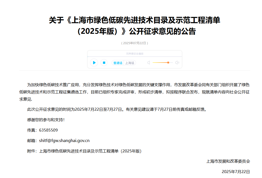 近日,上海市發展和改革委員會公開征求《上海市綠色低碳先進技術目錄及示范工程清單(2025年版)》的意見。其中3項氫能技術入選,詳情如下: