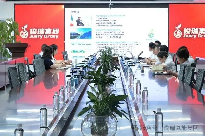 在俊瑞集團領導陪同下,來訪領導通過聽取業務沙盤講解,詳細了解了集團的發展戰略、核心業務布局、當前運營狀況及未來規劃,重點關注了公司在綠氫產業鏈上的核心優勢與發展前景。