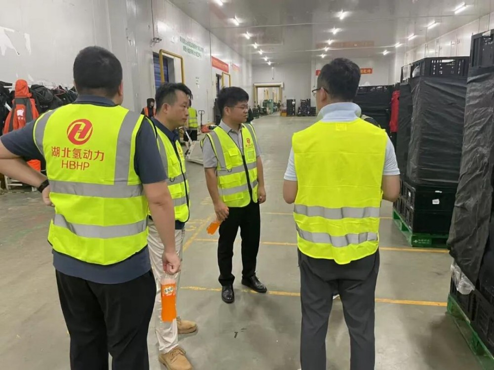 長江產(chǎn)業(yè)集團(tuán)一行實(shí)地查看湖北氫動(dòng)在美團(tuán)、樸樸超市等項(xiàng)目氫能冷藏車輛運(yùn)營情況,詳細(xì)了解氫能冷藏車輛運(yùn)營效率、車輛經(jīng)濟(jì)性、加氫便捷性等細(xì)節(jié)。