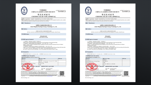 日前,明天氫能公司自主研發(fā)的船舶專用燃料電池系統(tǒng)MTSYS-120及燃料電池電堆MTMOD-150,成功獲得了中國船級社(CCS)型式認(rèn)可證書,可用于國內(nèi)航行海船、內(nèi)河船舶,成為安徽省首張氫燃料電池中國船級社型式認(rèn)可證書。