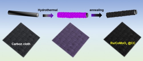 經酸處理的碳布支架具有較高的親水性,促進了鈷、鉬和釕離子在其表面的均勻分布。特別是,貴金屬釕均勻地分散在整個支架中,即使用量很少,也能實現優異的電化學性能。