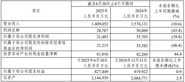 8月22日,中國石化發(fā)布2025年半年度報告。