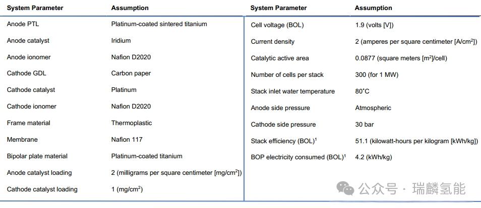 表:PEM電解槽的關(guān)鍵設(shè)計(jì)規(guī)范