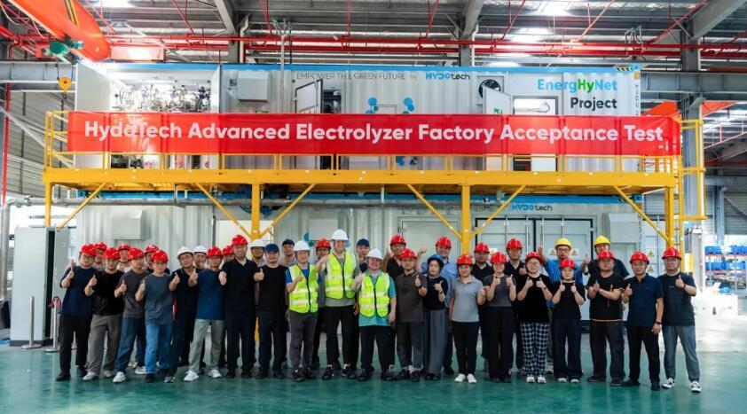 近日,海德氫能(HydoTech)為殼牌EnergHyNet項目定制開發的先進電解槽解決方案,成功通過工廠驗收測試(FAT)。8月18日,在象征安全啟航與合作圓滿的過水門儀式中,項目設備正式啟運,標志著這一國際合作項目邁入新階段。這一日期更具特殊意義——2022年8月18日,海德氫能新一代電解水制氫系統氫舟?首次發布。如今,氫舟?所奠定的核心技術成果,正持續在國際合作項目中落地兌現,截至目前,該系統已在中國、歐洲、中東等全球多個區域實現規模化應用,其技術領先性與商業化成熟度得到充分驗證。