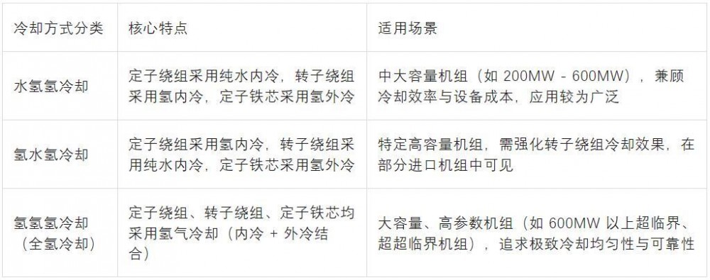 根據(jù)發(fā)電機(jī)定子繞組、轉(zhuǎn)子繞組及定子鐵芯的冷卻介質(zhì)差異,常見的氫氣冷卻方式主要分為三類,不同方式適用于不同容量和工況的機(jī)組,具體分類及特點(diǎn)如下: