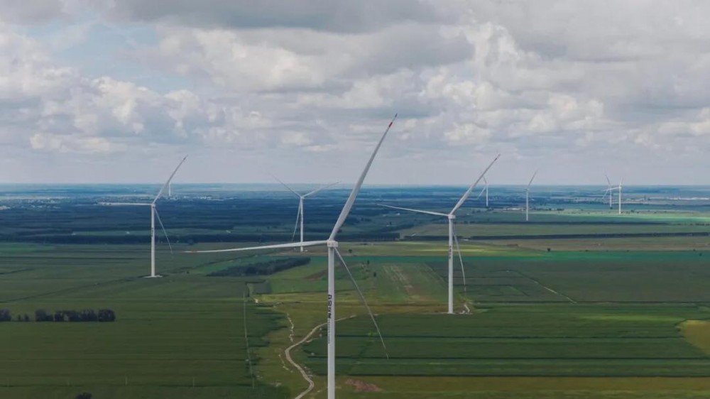 中能建松原氫能產業園(綠色氫氨醇一體化)項目采用綠電直供模式,創新應用了源網荷儲精準匹配、新型儲氫、多穩態柔性合成氨等一系列全球領先技術,為我國綠氫大規模商業化應用提供了可復制、可推廣的樣板。項目將分期建設總容量300萬千瓦的新能源配套項目。金風科技為一期項目提供GWH221-7.6MW、GWH221-7.7MW共67臺低溫型陸上風電機組,總裝機容量510MW。