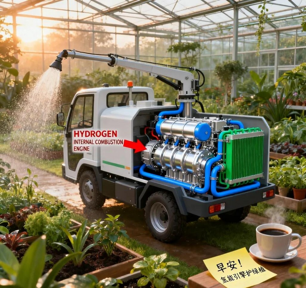 在“雙碳” 目標深入推進的當下,園林綠化行業正加速向低碳化、智能化轉型。作為園林養護的核心設備,灑水車的動力升級與功能創新成為行業關注焦點。氫成綠動新能源(武漢)有限公司正全力打造搭載氫內燃機 2.0T 動力系統、內置微型 PEM 制氫裝置的微型園林綠化灑水車,以“零碳動力 + 富氫養護” 的雙重優勢,重新定義園林作業新標準,為城市綠化養護注入綠色科技新動能。