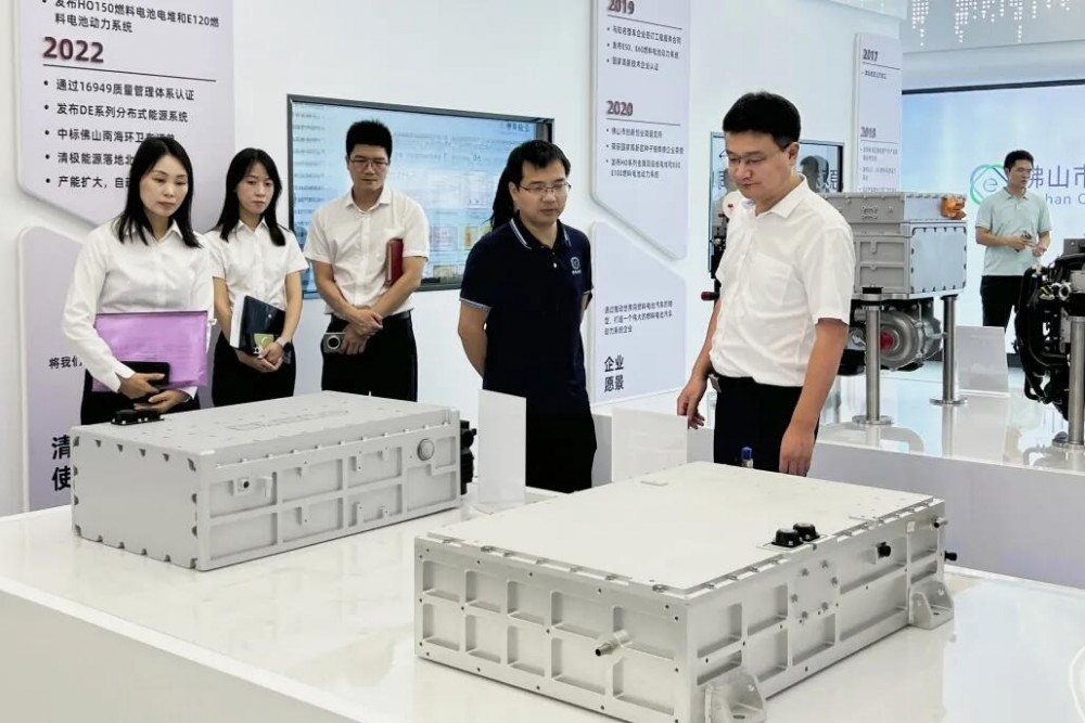 在清極能源總經理錢偉的陪同下,考察團一行參觀了產品展示中心、燃料電池電堆及系統生產線、測試間,重點了解了公司在金屬雙極板、電堆及系統集成等方面的核心技術優勢。雙方圍繞氫能產業政策環境、商業化應用場景等進行了深入交流。