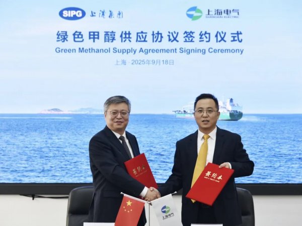 9月22日,上海電氣旗下洮南綠源燃料有限公司與上港能源正式簽署《綠色甲醇采購供應合同》。此前在9月18日,上港能源已與法國達飛簽署了《綠色甲醇加注服務合同》。這兩項合同的落地,標志著自2025年3月三方達成綠色甲醇長期供應合作框架協議以來,合作取得實質性進展。首期合作將持續至2030年。