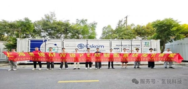 2025年10月8日“國際氫能日”,上海氫銳科技有限公司(以下簡稱“上海氫銳”)宣布,其歐盟CE認證的MW級PEM制氫設備出海發往南非國家電力公司ESKOM旗下某項目地,系中國制造MW級PEM制氫裝備首次出海。該產品滿足光伏制氫波動性運行場景的需求,具有高度集成、自動化以及低能耗等特點。高純氫氣(Purity:99.999%,Dew point:-75 °C)主要用于火力發電廠的氫冷發電機系統,其余通過園區管道提供給附近的化工企業,標志著國產MW級PEM制氫設備在工業應用領域的一次重要進展。