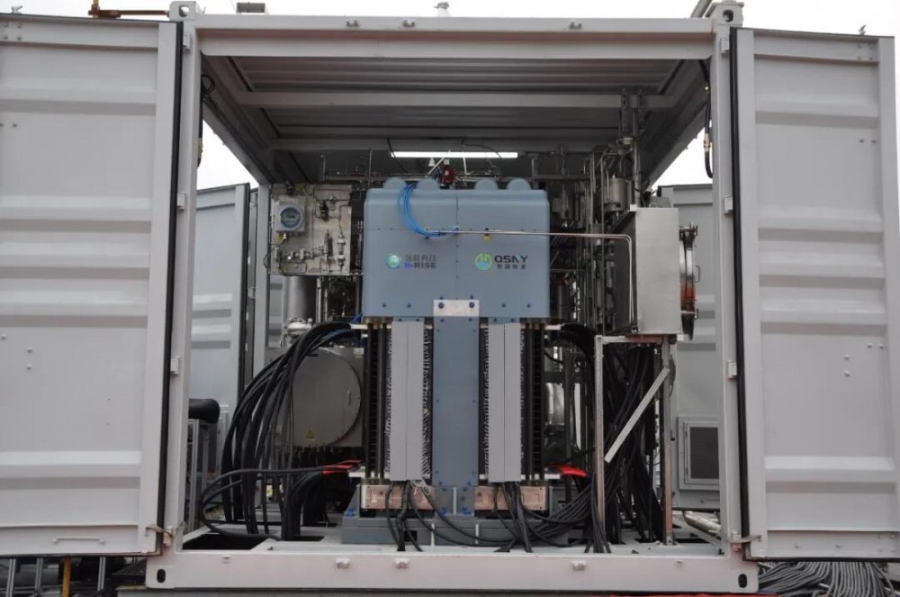 這款針對海上漂浮式平臺設(shè)計的大功率PEM電解槽及制氫系統(tǒng),突破了高耐久材料、高傳質(zhì)流場、高精度裝配和高效率控制等多項創(chuàng)新技術(shù),具備離網(wǎng)運行、防腐蝕、抗風(fēng)浪和輕量化等特性,可在惡劣海洋環(huán)境下長期穩(wěn)定運行。整個系統(tǒng)采用模塊化設(shè)計,每小時制氫量達到1000標(biāo)立方米,是國際上產(chǎn)能最大的海上PEM電解槽及系統(tǒng)。