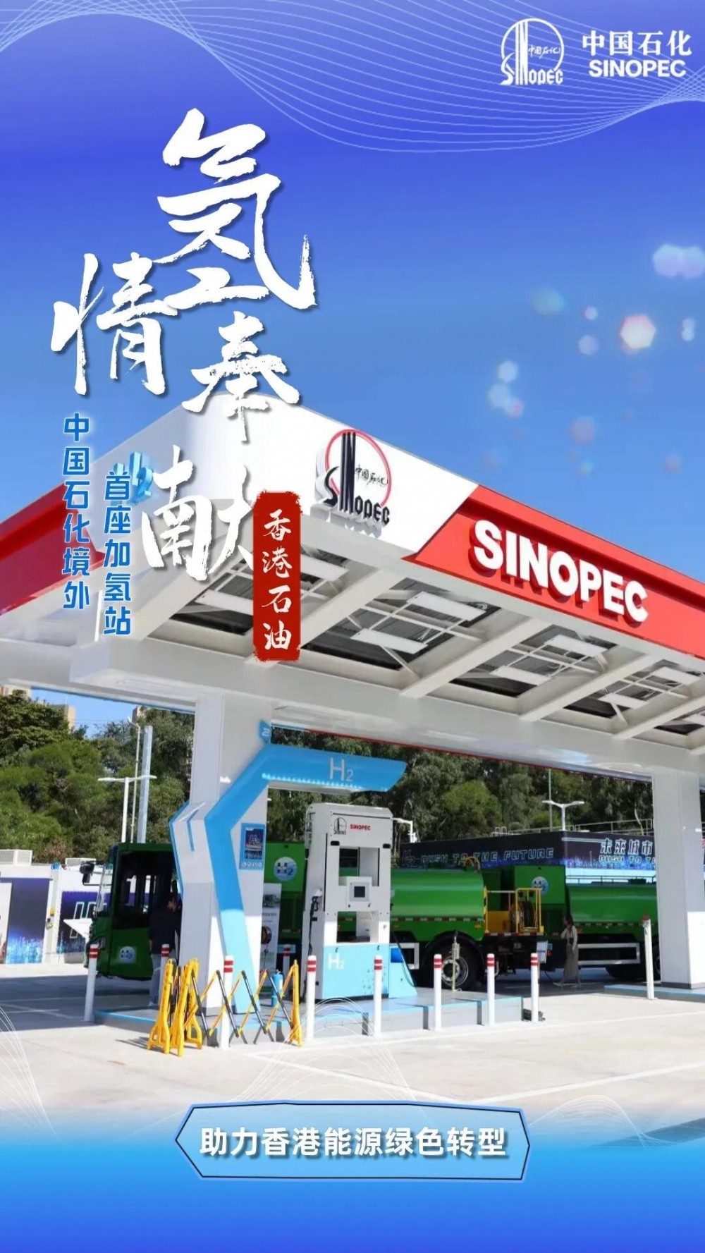 香港公司在香港凹頭順利建成“油、氣、氫、電、服”五位一體綜合加能站,每日加氫能力達1000公斤,可為公共巴士、私家車等提供全天候加氫服務,努力把香港打造成一個多場景運用的綠色低碳能源生態圈。