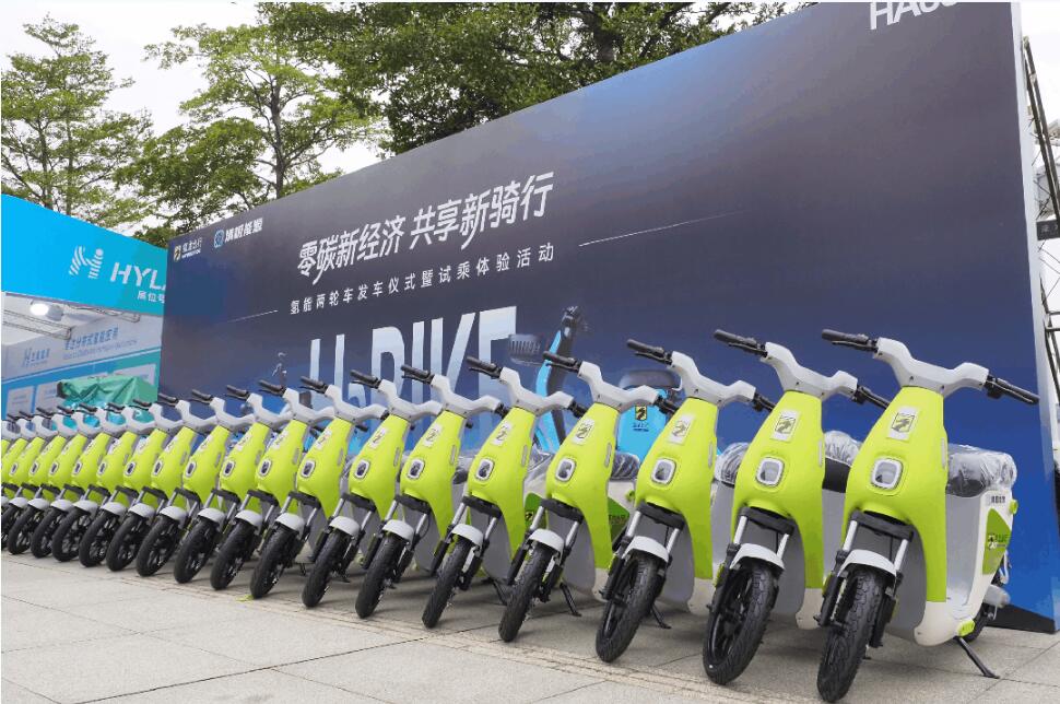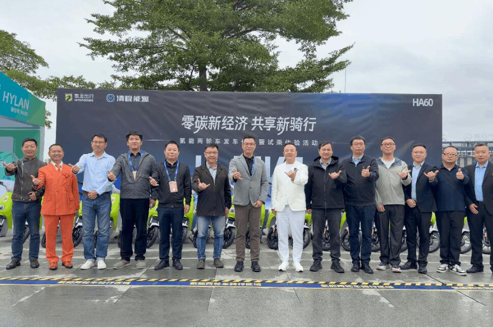 活動上,香港科創協會、香港生產力促進局、南國桃園、佛山環能院、粵港澳大灣區(廣東)創新創業孵化基地等領導以及重要合作伙伴一同為“零碳新經濟 共享新騎行”氫能兩輪車的批量發車儀式剪彩。