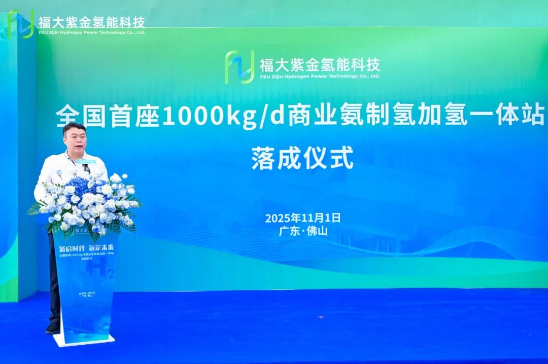 落成儀式上,福州大學(xué)副校長(zhǎng)、福大紫金氫能科技股份有限公司董事長(zhǎng)江莉龍、佛山市南海區(qū)副區(qū)長(zhǎng)曾法強(qiáng)分別致辭。