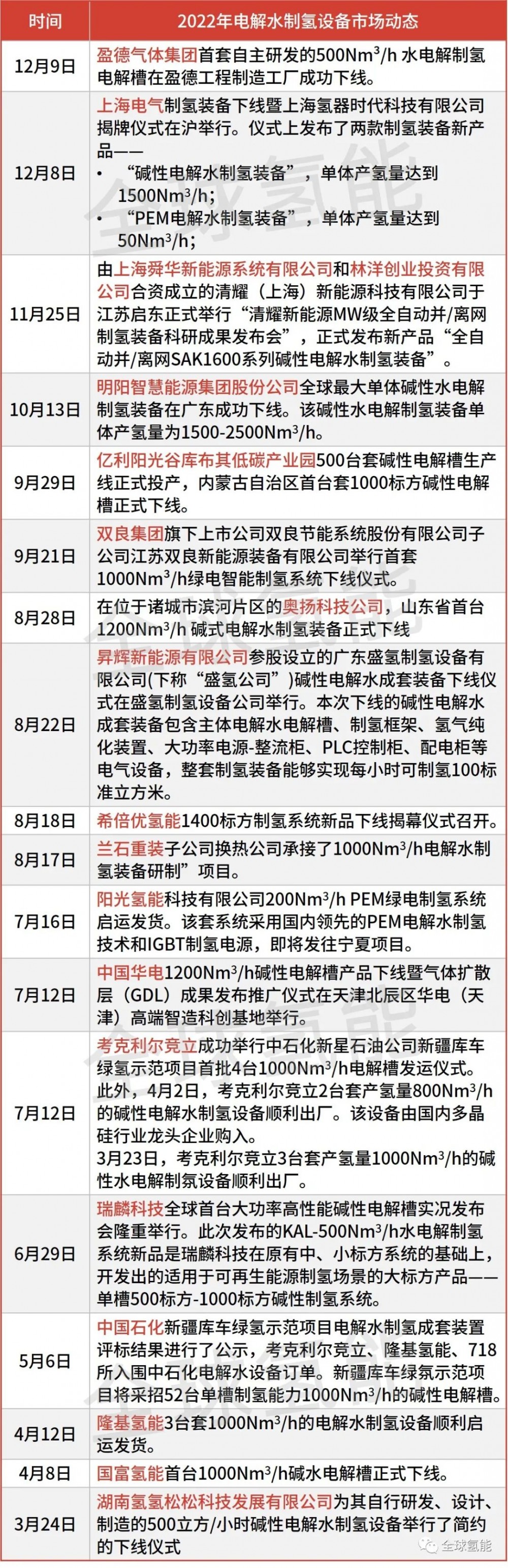 2022年電解水制氫設(shè)備市場動態(tài),全球氫能整理