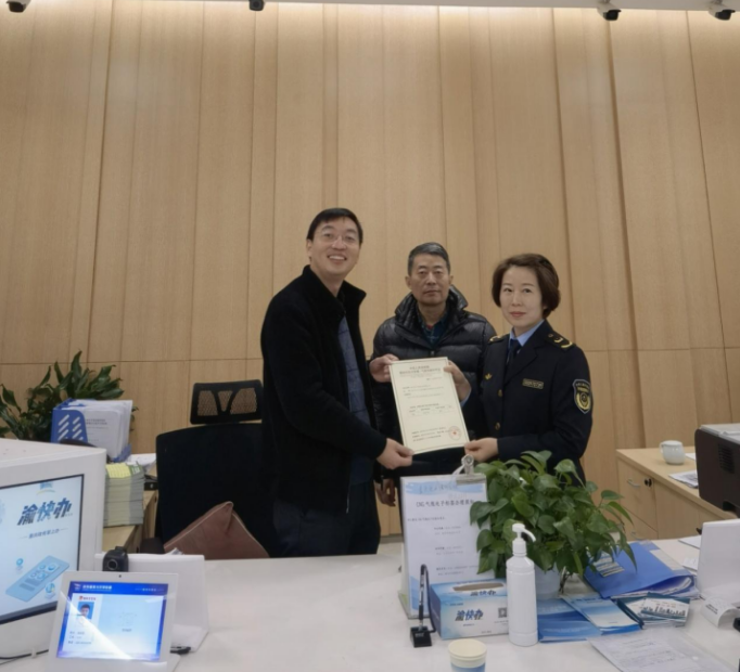 兩江新區向明天氫能發出全市首張氫能源汽車車載氣瓶充裝許可證。兩江新區市場監管局供圖