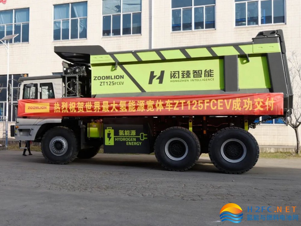 中聯重科ZT125FCEV氫能源礦卡是中聯礦機研發的全球最大噸位氫能源寬體礦用自卸車。該車搭載兩臺高性能氫燃料電池,工程化和成熟度高,最高效率達到65%,氫耗低于行業平均水平,可顯著降低車輛的運營成本。