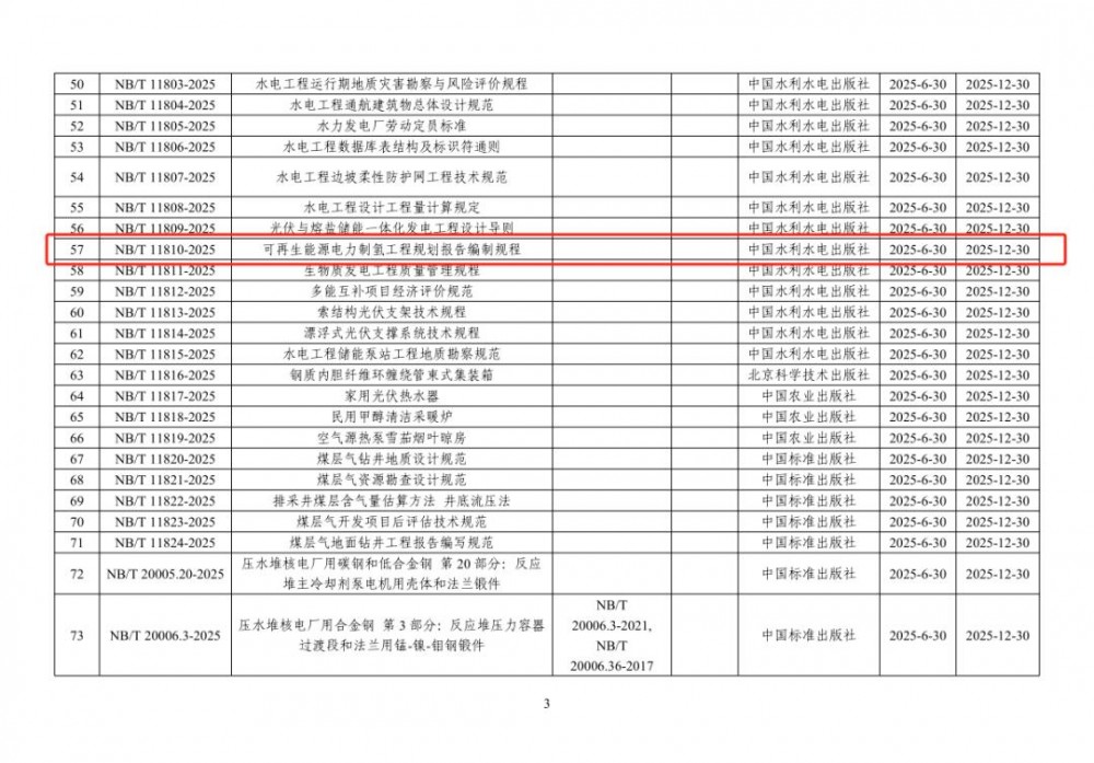 近日,水電水利規劃設計總院主持編制的首部能源行業氫能標準NB/T 11810-2025《可再生能源電力制氫工程規劃報告編制規程》(以下簡稱“《規程》”)正式發布,將于2025年12月30日起實施。