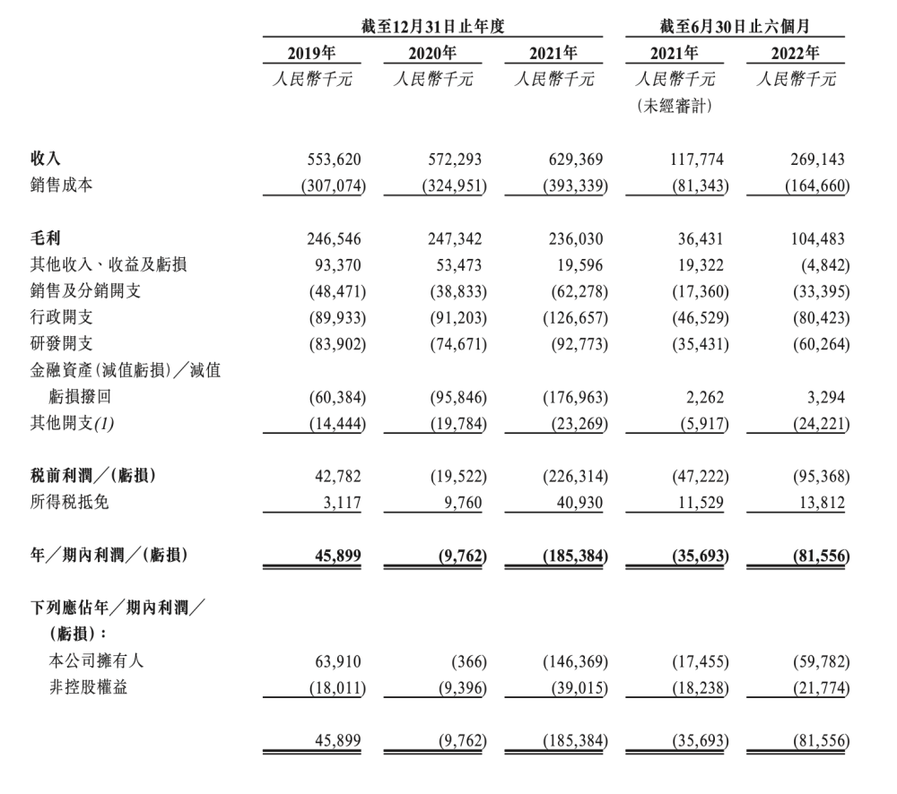 聆訊后資料顯示,2019-2021年及2022年上半年,億華通收入分別為5.54億、5.72億、6.29億、2.69億元;期內利潤為4589.9萬、-976.2萬、-1.85億、-8155.5萬元。