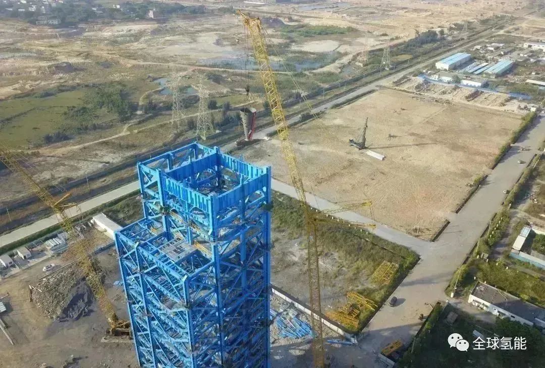 經(jīng)過近一年的建設(shè),氫基豎爐本體鋼結(jié)構(gòu)已經(jīng)建設(shè)到78米高的位置。這一年,項目團(tuán)隊成員克服當(dāng)?shù)嘏_風(fēng)天氣、炎熱天氣、暴雨天氣等影響,時刻嚴(yán)抓施工安全,緊跟施工進(jìn)度,嚴(yán)控施工質(zhì)量,只為這國內(nèi)首座百萬噸級氫基豎爐,“氫”盡全力。