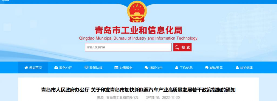 12 月 30 日,青島市工信局印發(fā)了《青島市加快新能源汽車產(chǎn)業(yè)高質(zhì)量發(fā)展若干政策措施》(以下簡稱 "《措施》")。