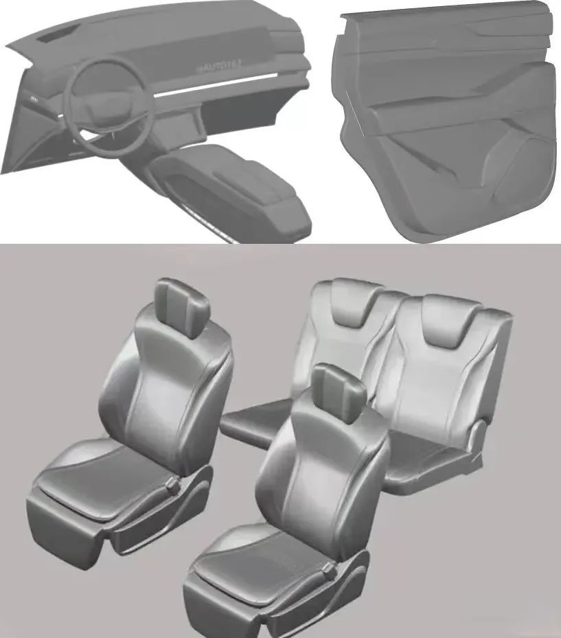 內(nèi)飾的設(shè)計(jì)十分簡(jiǎn)潔,一塊約一米長(zhǎng)度的大屏代替了大部分的物理按鍵,這也是時(shí)下流行的風(fēng)格。此外,新車的方向盤前方似乎配備了一個(gè)大尺寸的AR-HUD。此外,車門扶手下方預(yù)留了一個(gè)按鍵,或許這就是電子門鎖,提升了檔次。
